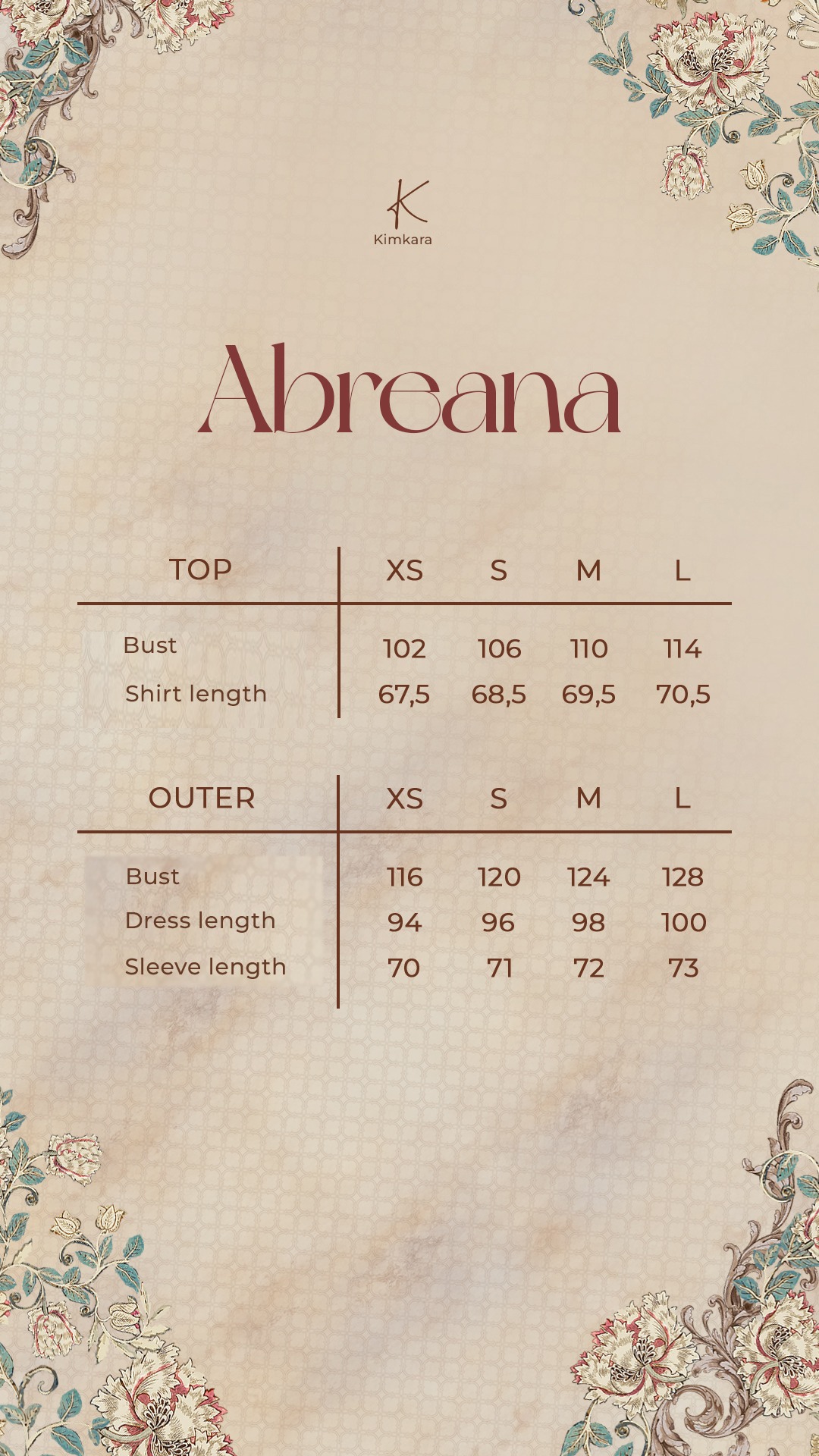 Outer : XS, S, M, L