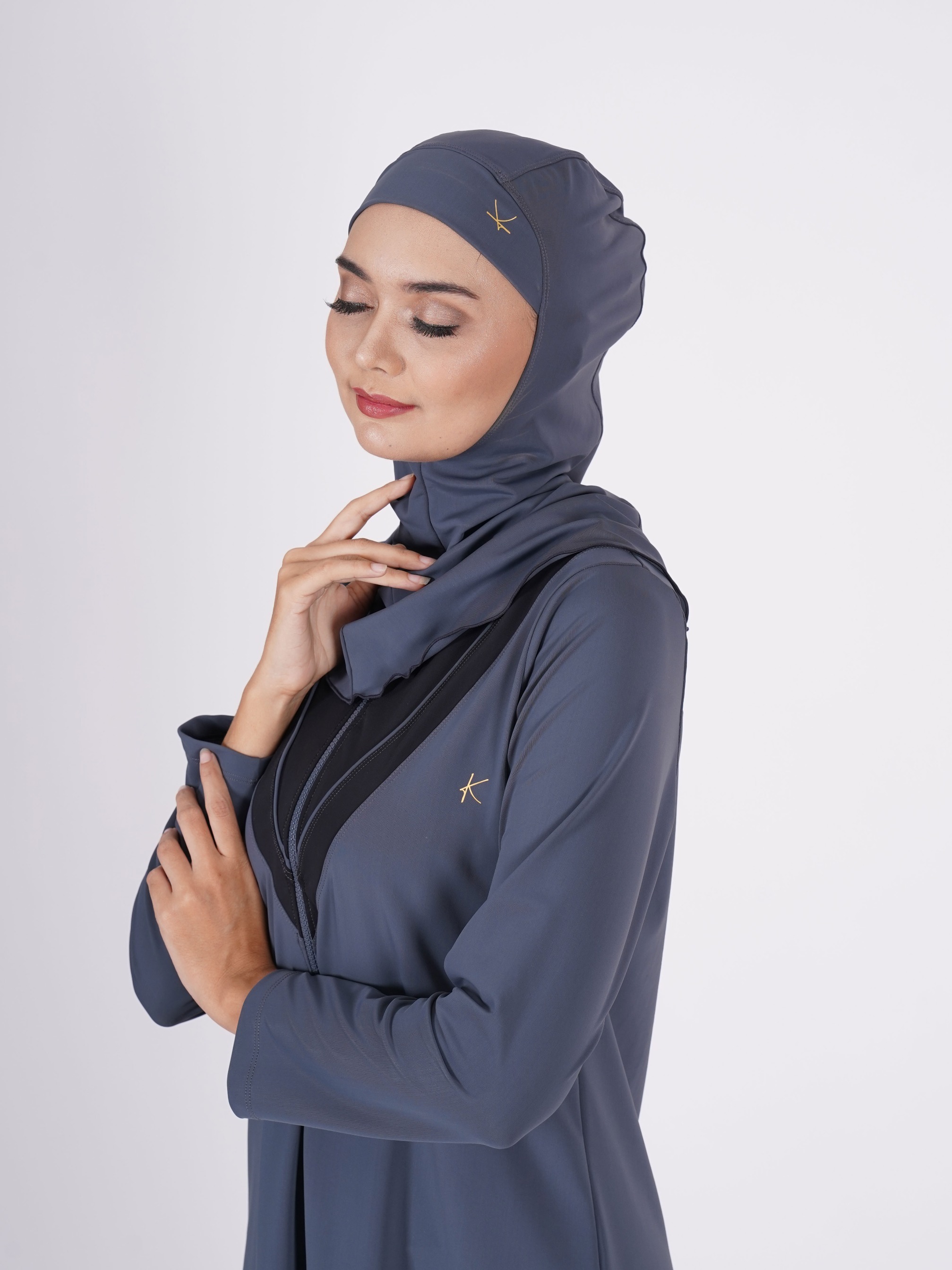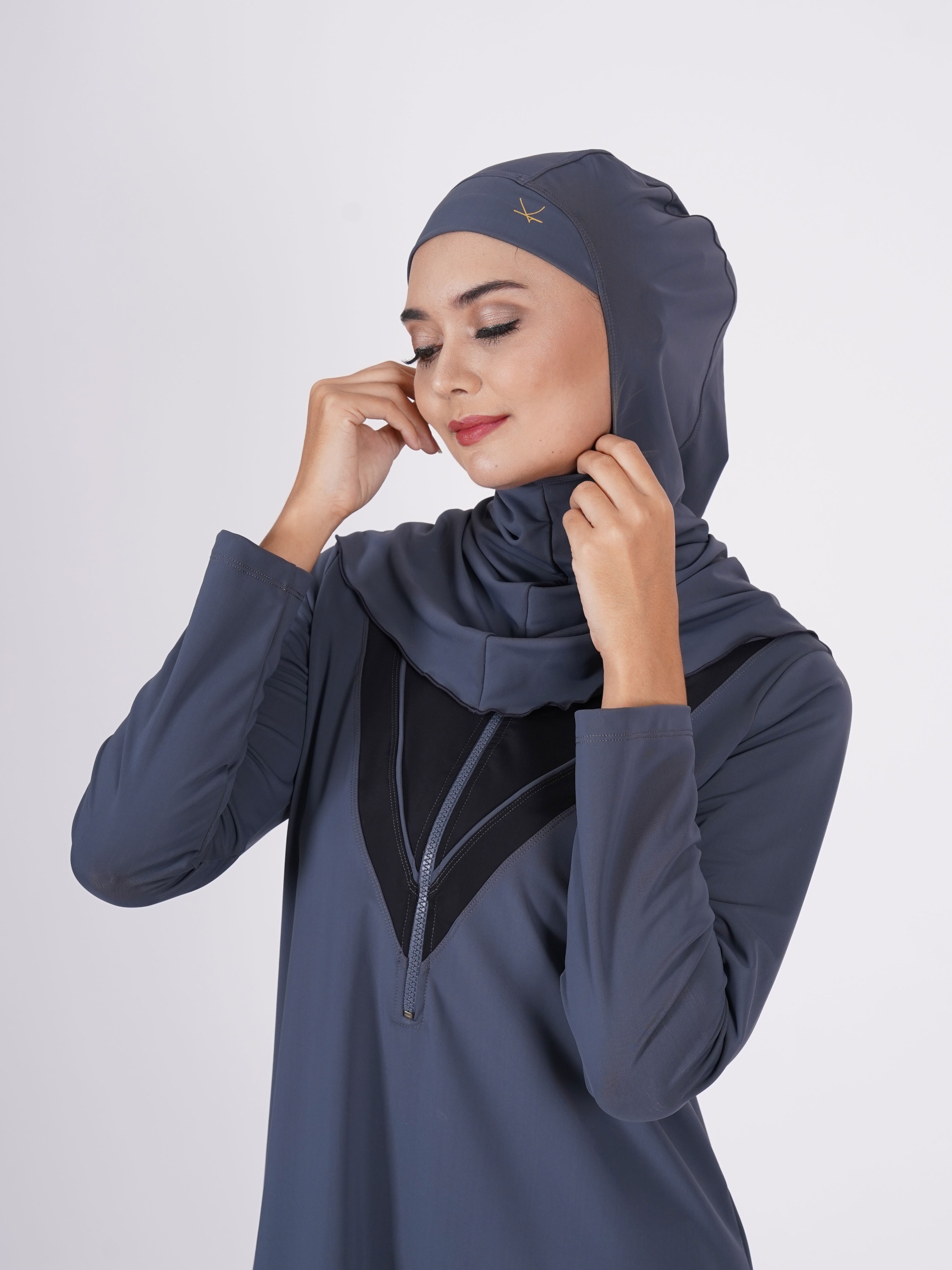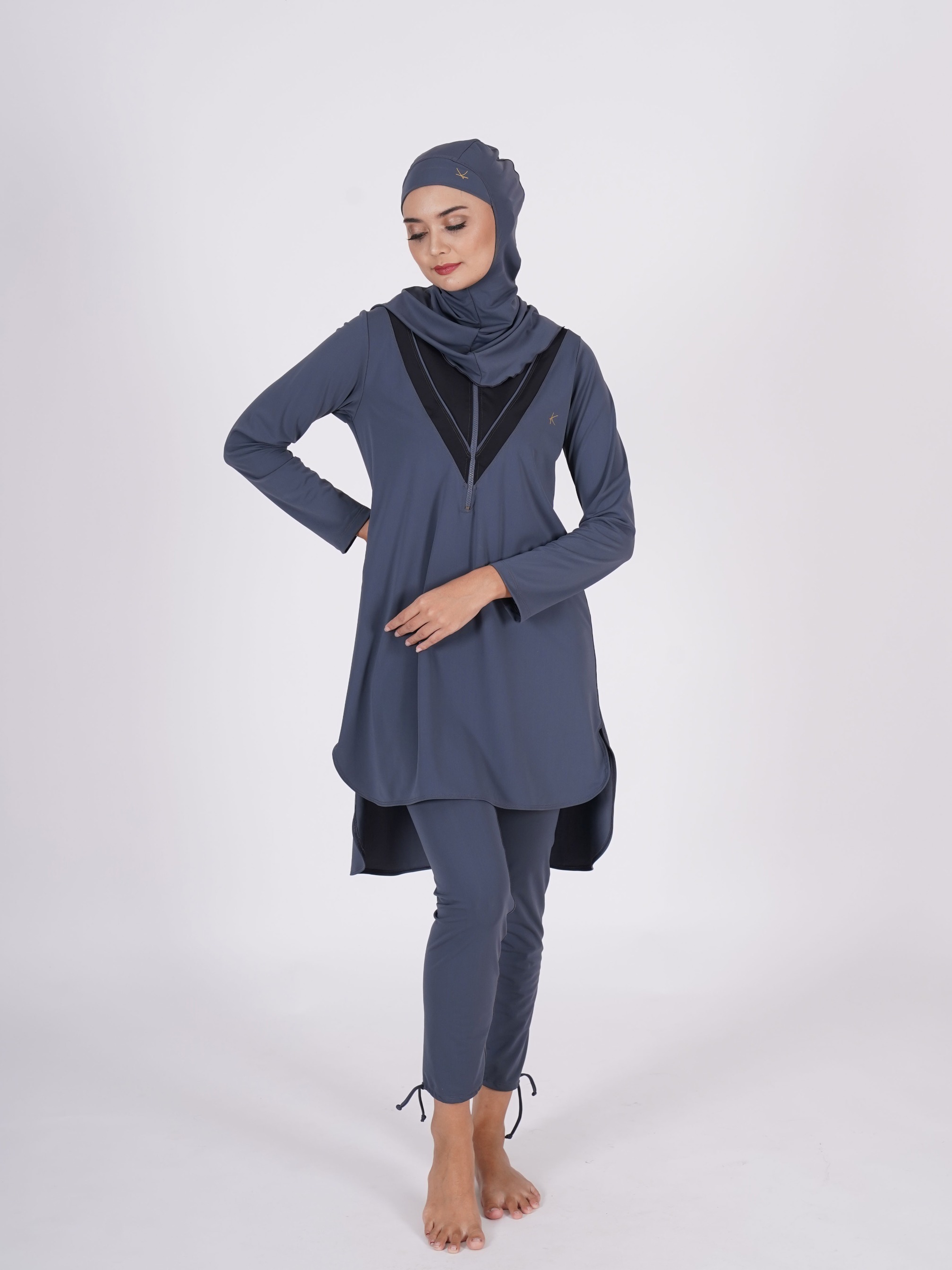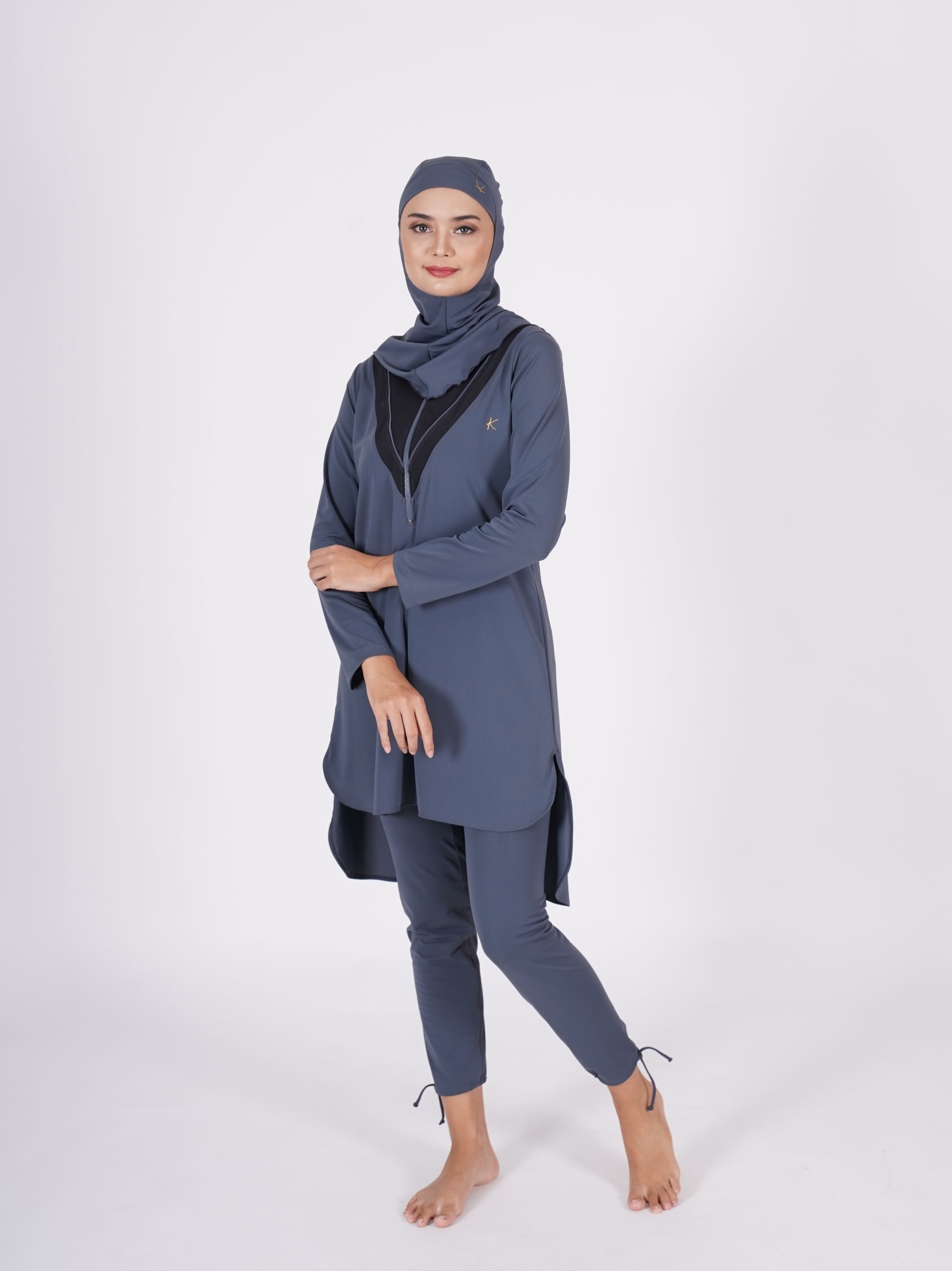 - Swimsuit top includes hijab