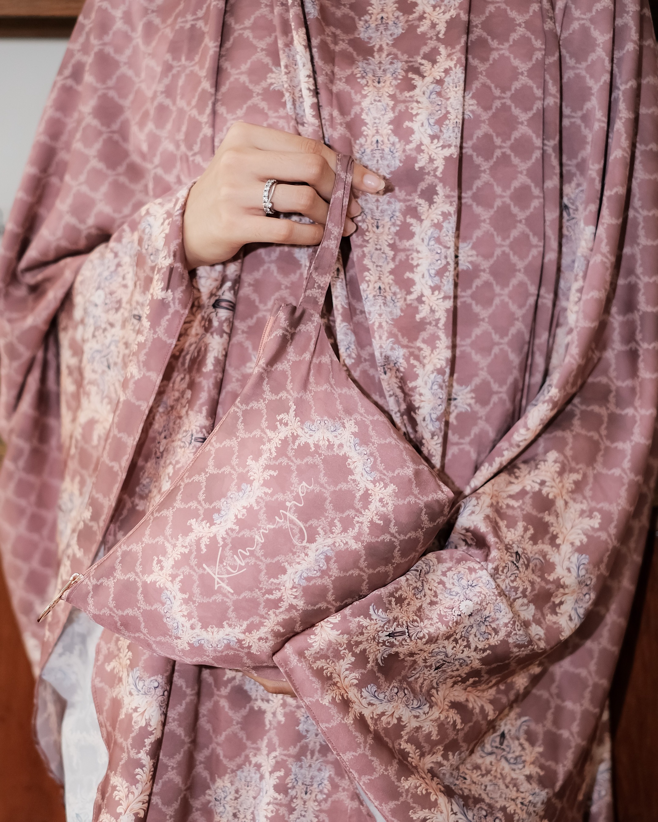 Every purchase of a mukena or prayer mat has a FREE pouch