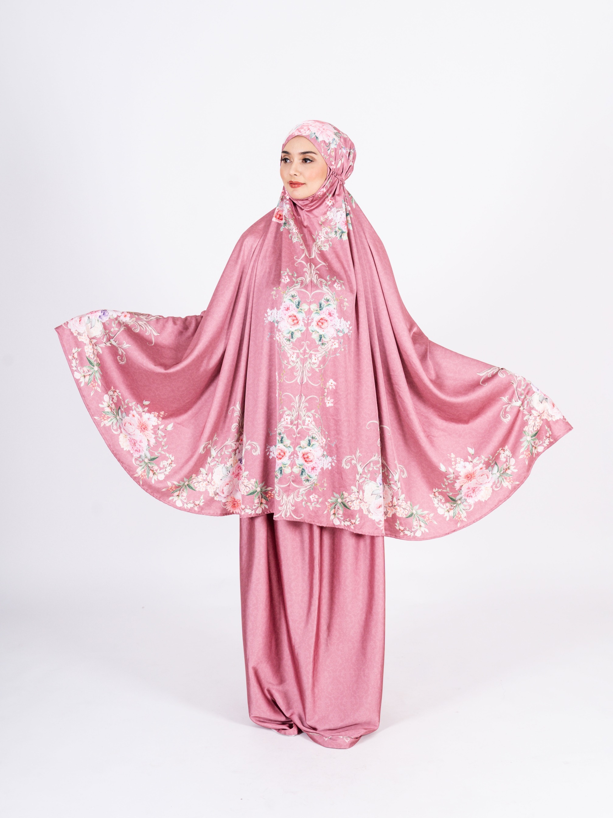 Adult mukena printed with Atiya Framboise motif