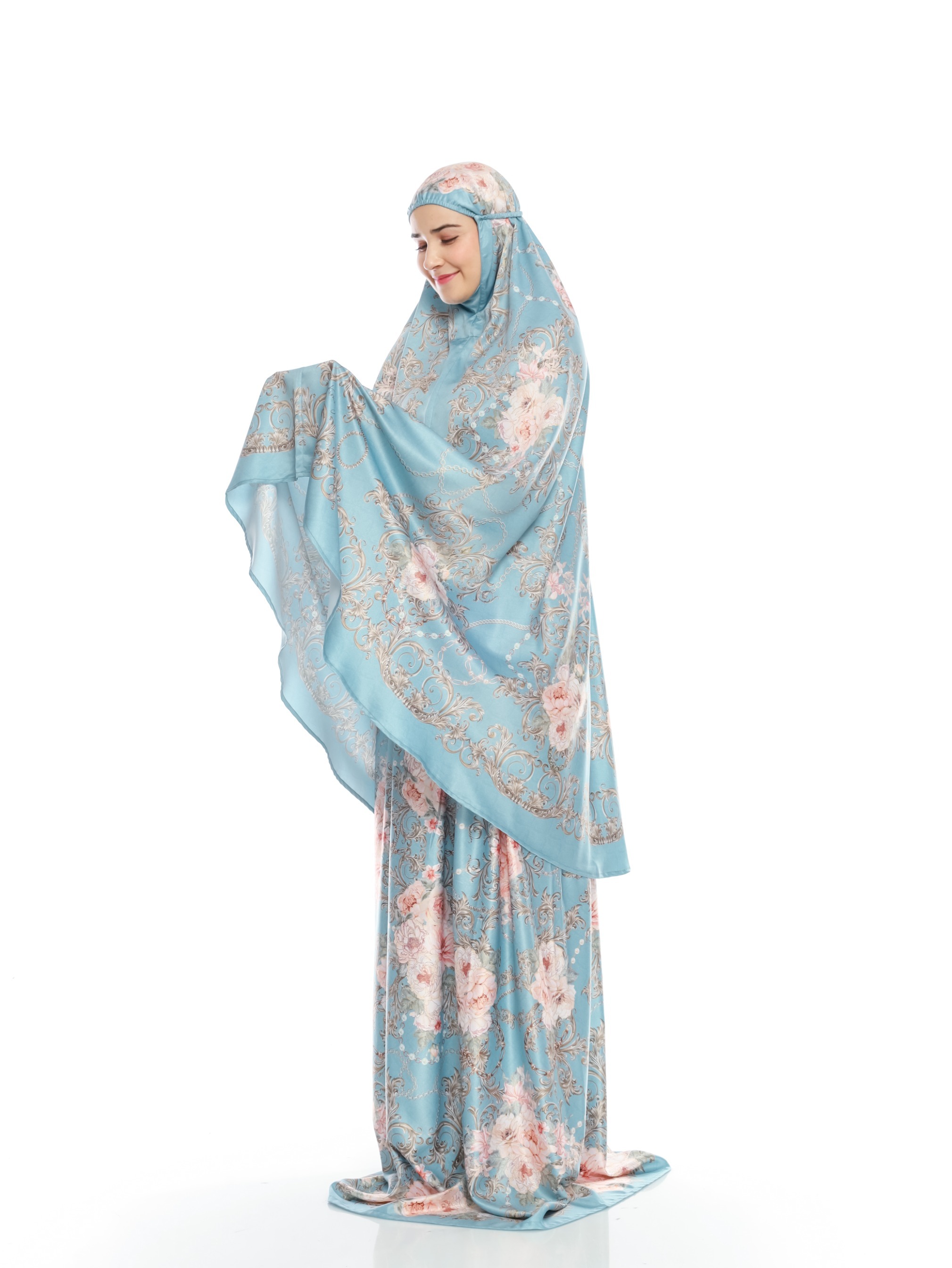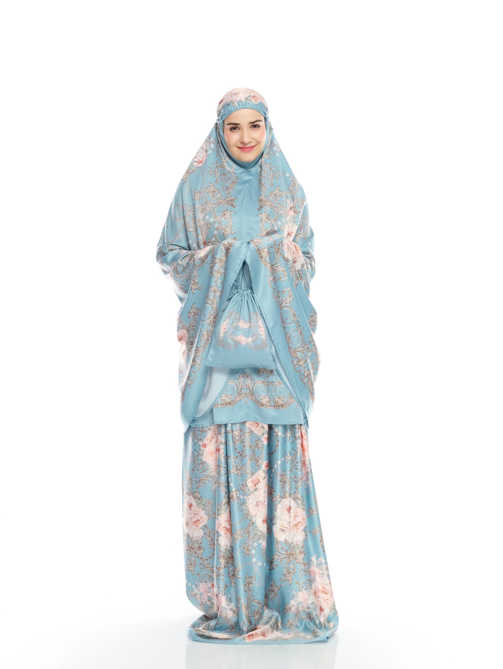 Adult mukena printed with Mazaya Aqua motif