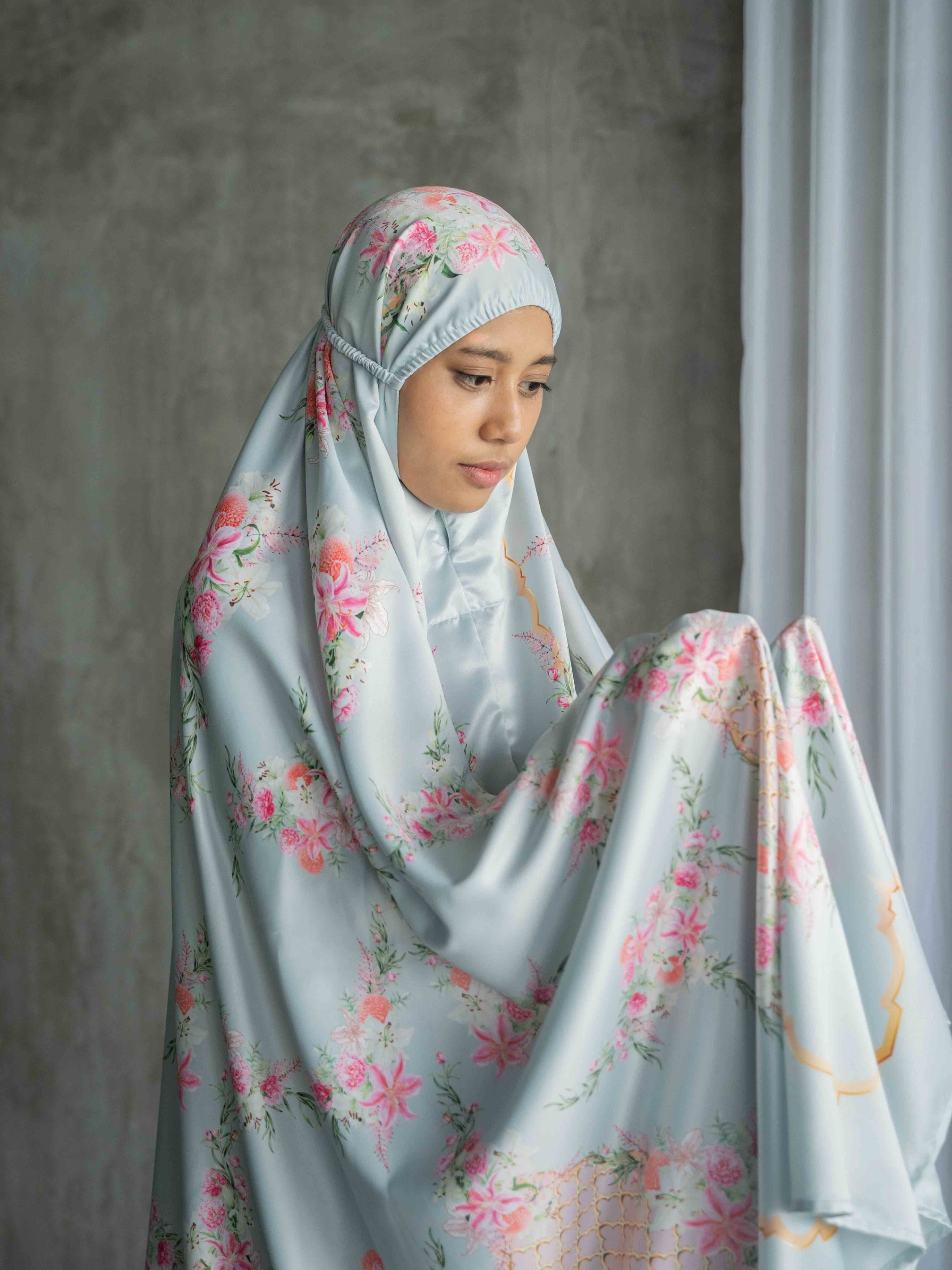 For every purchase of a mukena or prayer mat, a FREE pouch