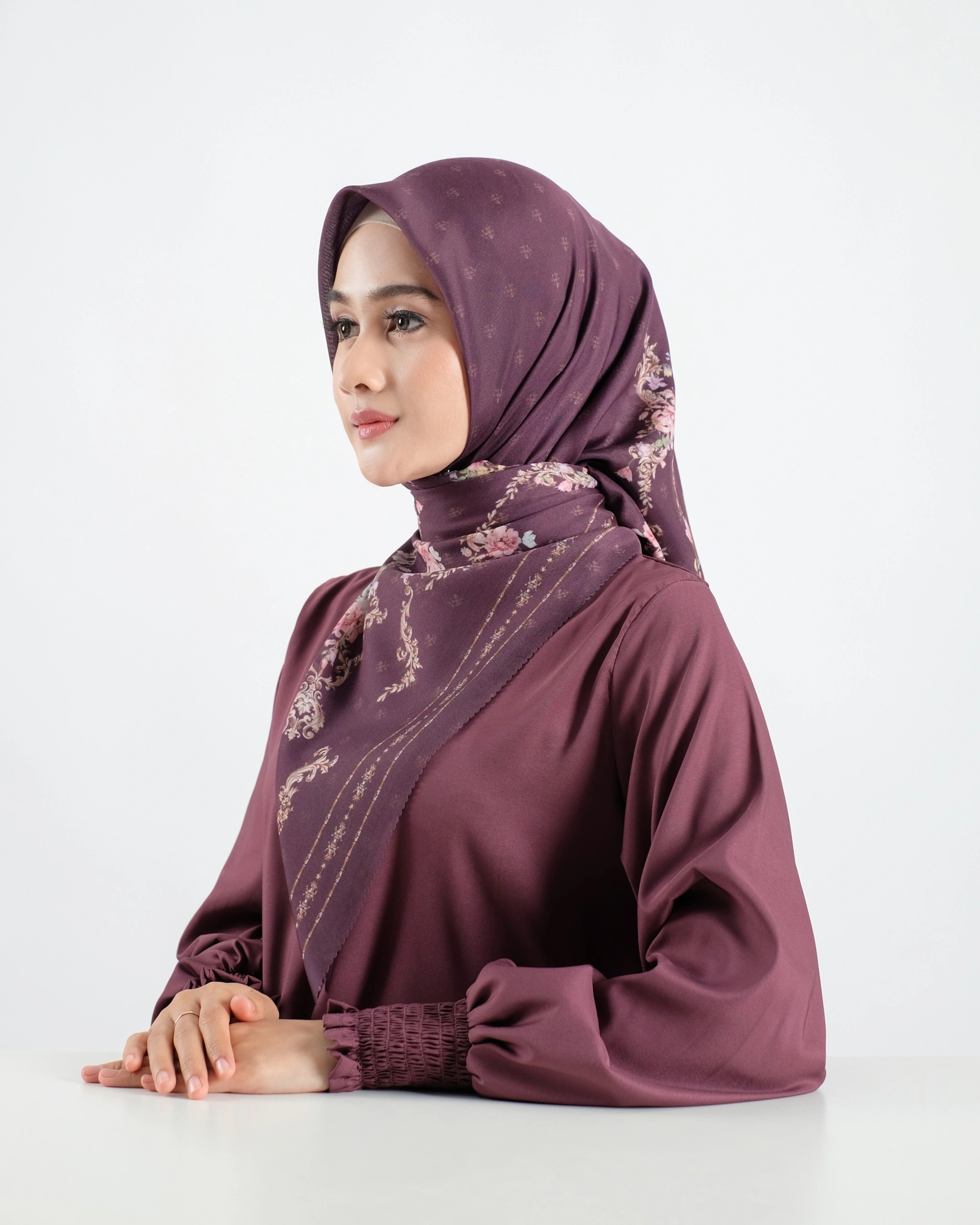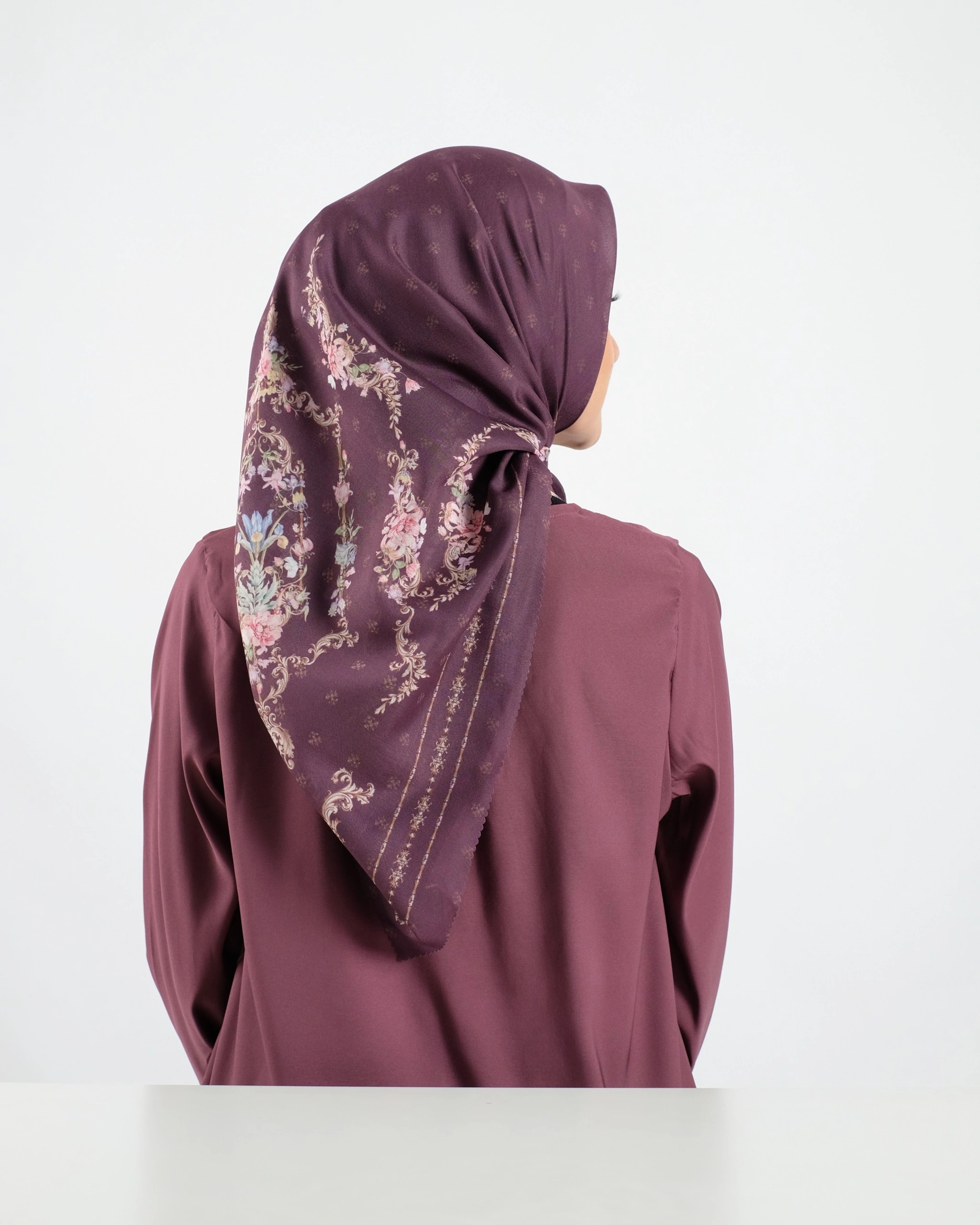 - Tepi scarf dengan jahitan laser cut untuk tampilan rapi dan modern